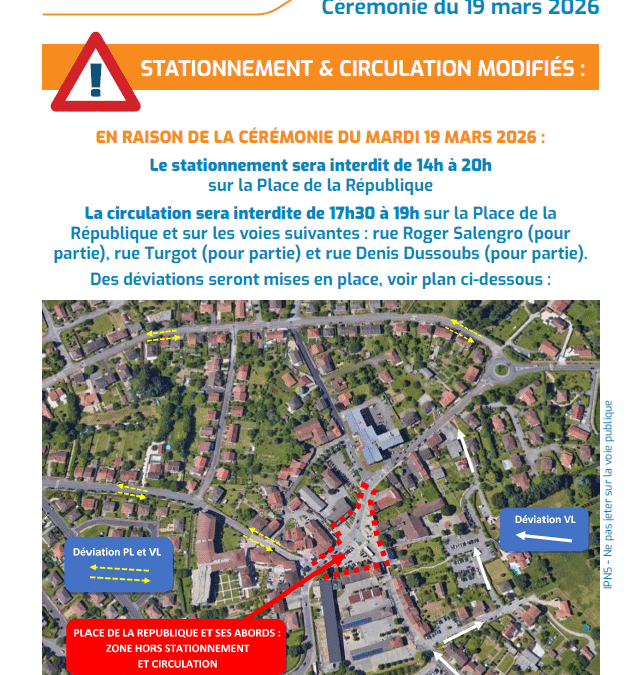 À l’occasion de la cérémonie commémorative du 19 mars 2026, des modifications de stationnement et de circulation sont à prévoir aux abords de la Place de la République.